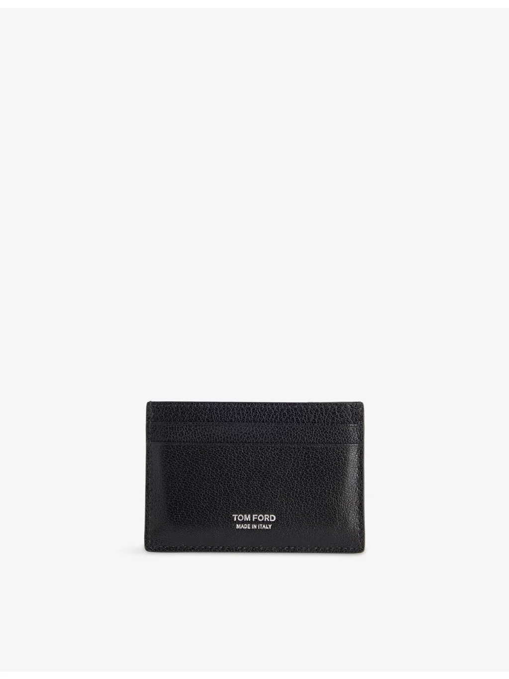PRODUCT DETAILS - Tom Ford leather card holder - 100% goat leather; lining 100% sheep leather - Rectangular shape, foiled branding at front, embossed T at back, two card slots at front and back, all-over grained leather, central slip pocket, internal debossed branding, fully lined - Height 7cm, width 10cm, depth 5mm - Specialist leather clean - Made in Italy - Comes with a dust bag, presented in a box Ref: R04554453
