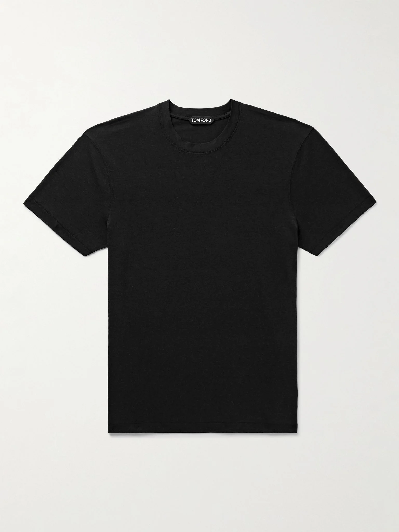 It's worth investing in high-quality basics like TOM FORD's T-shirts. The kind of piece you'll wear on rotation year-round, this black version is cut from lightweight Lyocell and cotton-blend jersey and subtly embroidered with the label's monogram near the hem. Size & Fit - Fits true to size. Take your normal size - Those with broad shoulders may wish to take the next size up - Designed for a slim fit - Lightweight, stretchy fabric - Italian sizing Details & Care - Black Lyocell and cotton-blend jersey - 67% Lyocell, 33% cotton - Machine wash