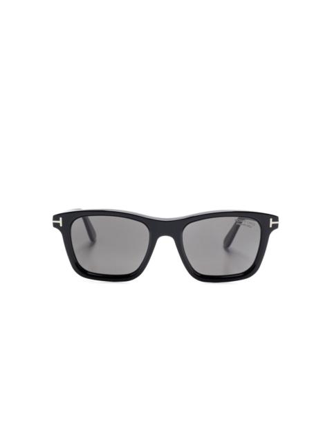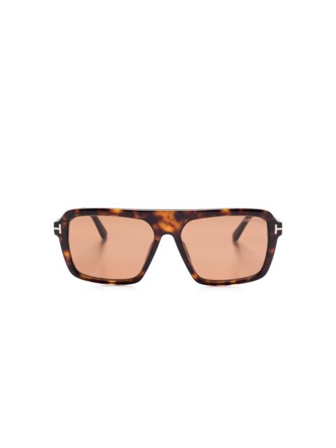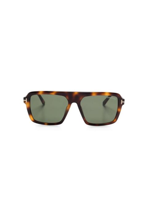 The Tom Ford 1179 Barron Sunglasses feature a classic rectangular shape with an arching brow line su