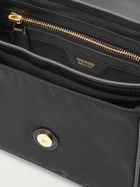 TOM FORD's compact messenger bag is designed for everyday utility. Featuring sleek gold-tone hardware, it's been made in Italy from recycled-nylon and features a front slip pocket under the flap, to tuck your phone. Details & Care - Black recycled-nylon and leather (Calf) - Internal slip and zipped pockets - Unlined - Magnetic-fastening front flap