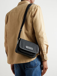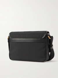 Leather-Trimmed Recycled-Nylon Messenger Bag Black
