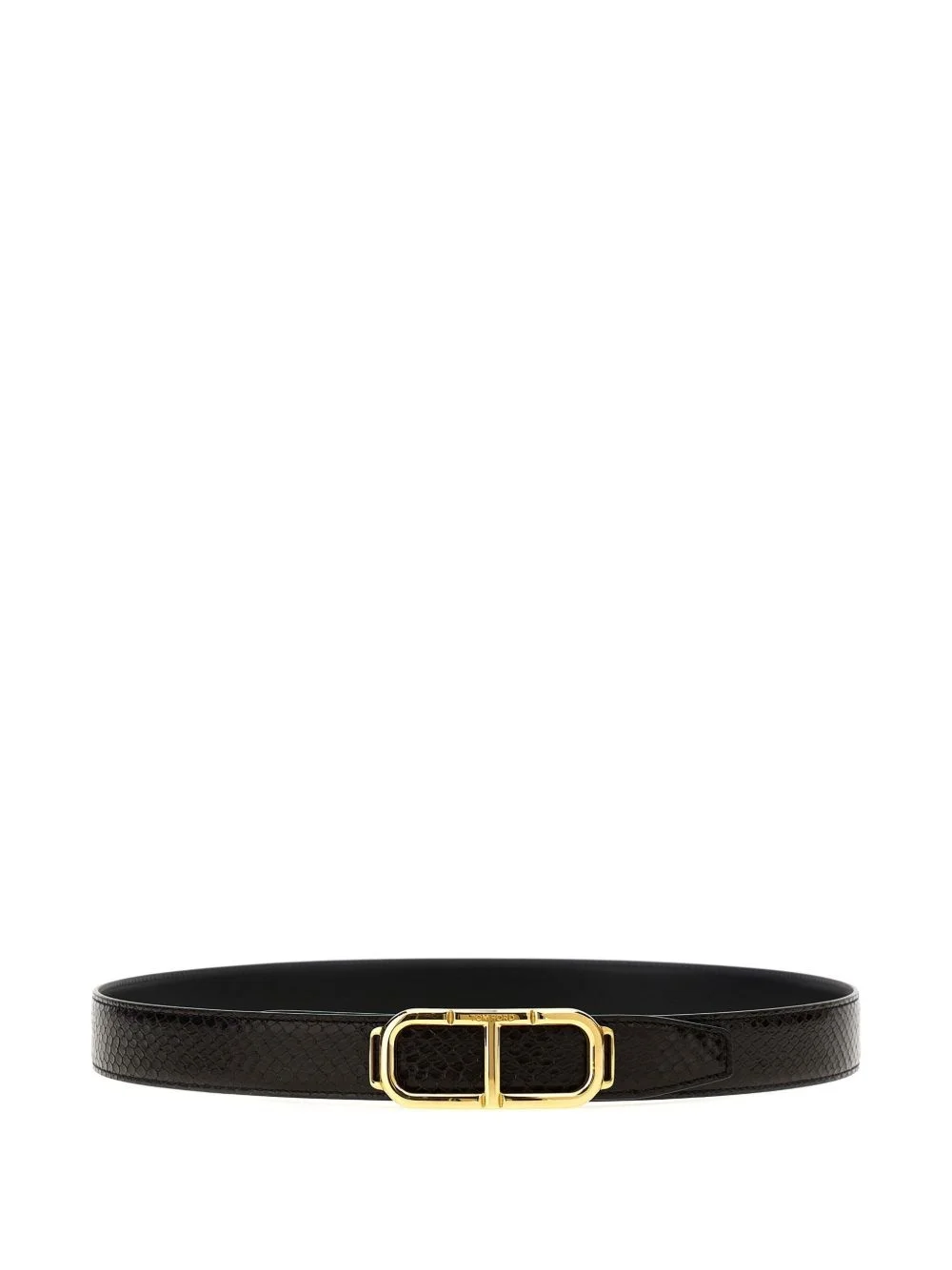 T-logo belt Highlights - Black - Snap-fit fastening - Reversible - Embossed crocodile effect Made in Italy Composition Calf Leather 100% SIZE & FIT Measurement WIDTH 1.18 in(3 cm)
