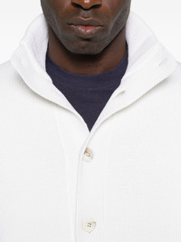 button-fastening high-neck cardigan Highlights - White - Button fastening - Ribbed knit - High neck - Long sleeves - Ribbed hem Made in Italy Composition Cotton 70%, Silk 30% SIZE & FIT Model measurements Height 6 ft 0 in(1.84 m) Bust/Chest 35.82 in(91 cm) Hips 37 in(94 cm) Waist 28.34 in(72 cm) Washing instructions Dry Clean Only