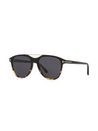 Damian-02 sunglasses Highlights - Black - Acetate - Tortoiseshell effect - Pilot frame - Uv-protective grey tinted lenses - Contrasting bridge - Logo plaque at the arm - Straight arms - Curved tips - These glasses come with a protective case. Made in Italy Composition Acetate 100% SIZE & FIT Measurement Arm Length 5.7 in(14.5 cm) Bridge Width 0.66 in(1.7 cm) Lens Diameter 2.12 in(5.4 cm)