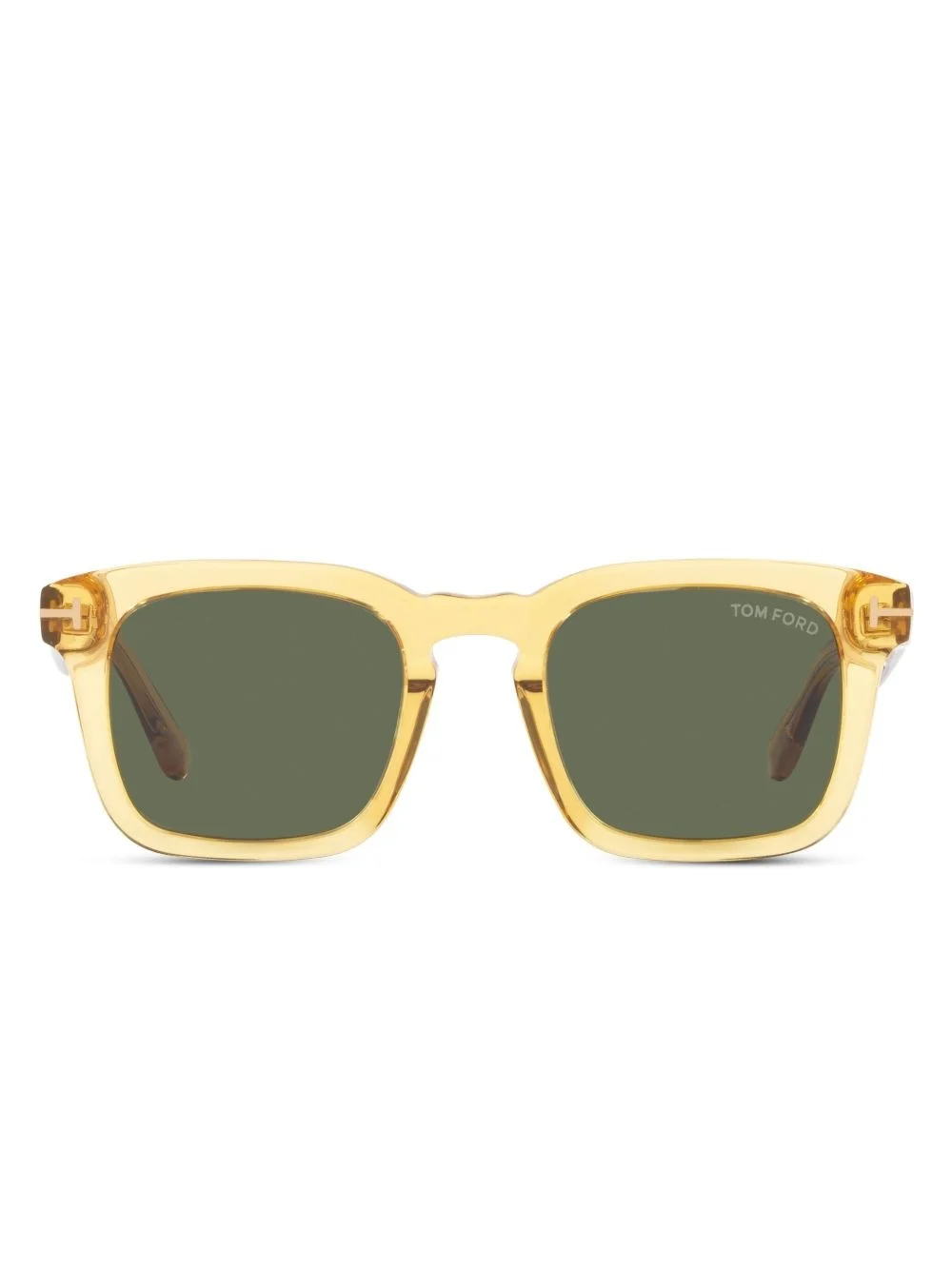 TR001097 square-frame sunglasses Highlights - Yellow - Transparent design - Green tinted lenses - Curved tips - These glasses come with a protective case. Made in United States Composition Acetate 100% SIZE & FIT Measurement Arm Length 5.7 in(14.5 cm) Bridge Width 0.86 in(2.2 cm) Lens Diameter 1.96 in(5 cm)