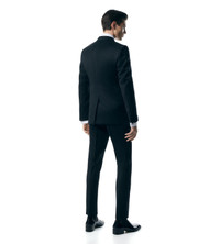 - SHELTON TUXEDO - PEAK LAPEL - SATIN ALONG LAPEL AND SIDE STRIPE - SINGLE VENT - 76CM JACKET LENGTH - 19CM HEM - WOOL MOHAIR - 85% WOOL 15% WOOL MOHAIR - MADE IN ITALY