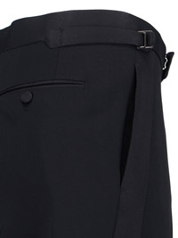 TOM FORD BLACK STRETCH WOOL TUXEDO PANTS WITH MID WAIST, BELT, ZIP AND HOOK CLOSURE, TWO SIDE POCKETS, TWO BACK BUTTON WELT POCKETS, STRAIGHT LEG. PRODUCT INFO PRODUCT CODE PESRG1 WES01NAA COMPOSITION: 96% WOOL, 4% SPANDEX SIZE AND FIT: SLIM FIT MADE IN: SWITZERLAND
