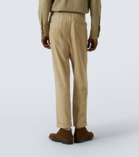 Product Details - Material: 65% lyocell, 21% silk, 14% cotton - Care instructions: dry clean - Made in Italy - Designer color name: Khaky - Item color: beige - Drawstring waist - Pockets: side slit pockets, back pockets - Details: 100% water-buffalo horn - Material II: 100% calf leather - Item number: P01042748 Size & Fit - True to size - Elasticated waist - Adjustable at the waist - Non-stretchy fabric - Tapered leg - The model in the picture is 185cm-6'1" and wearing a size 32