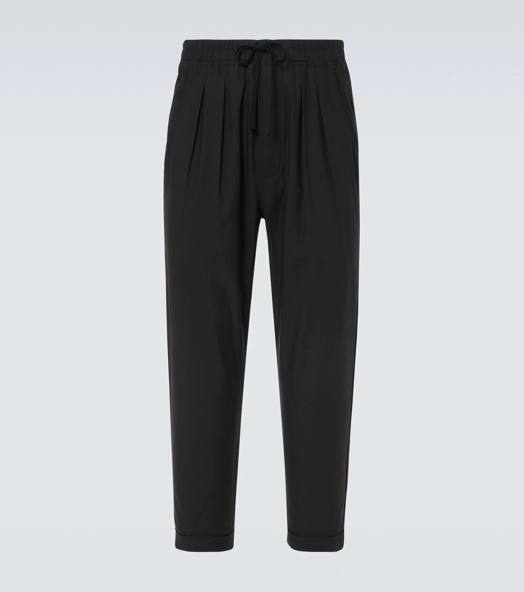 Product Details - Material: 65% lyocell, 21% silk, 14% cotton - Care instructions: dry clean - Made in Italy - Designer color name: Black - Item color: black - Material II: 100% calf leather - Details: 100% water-buffalo horn - Drawstring waist - Pockets: side slit pockets, back pockets - Item number: P01042754 Size & Fit - True to size - Elasticated waist - Adjustable at the waist - Non-stretchy fabric - Tapered leg - The model in the picture is 185cm-6'1" and wearing a size 32
