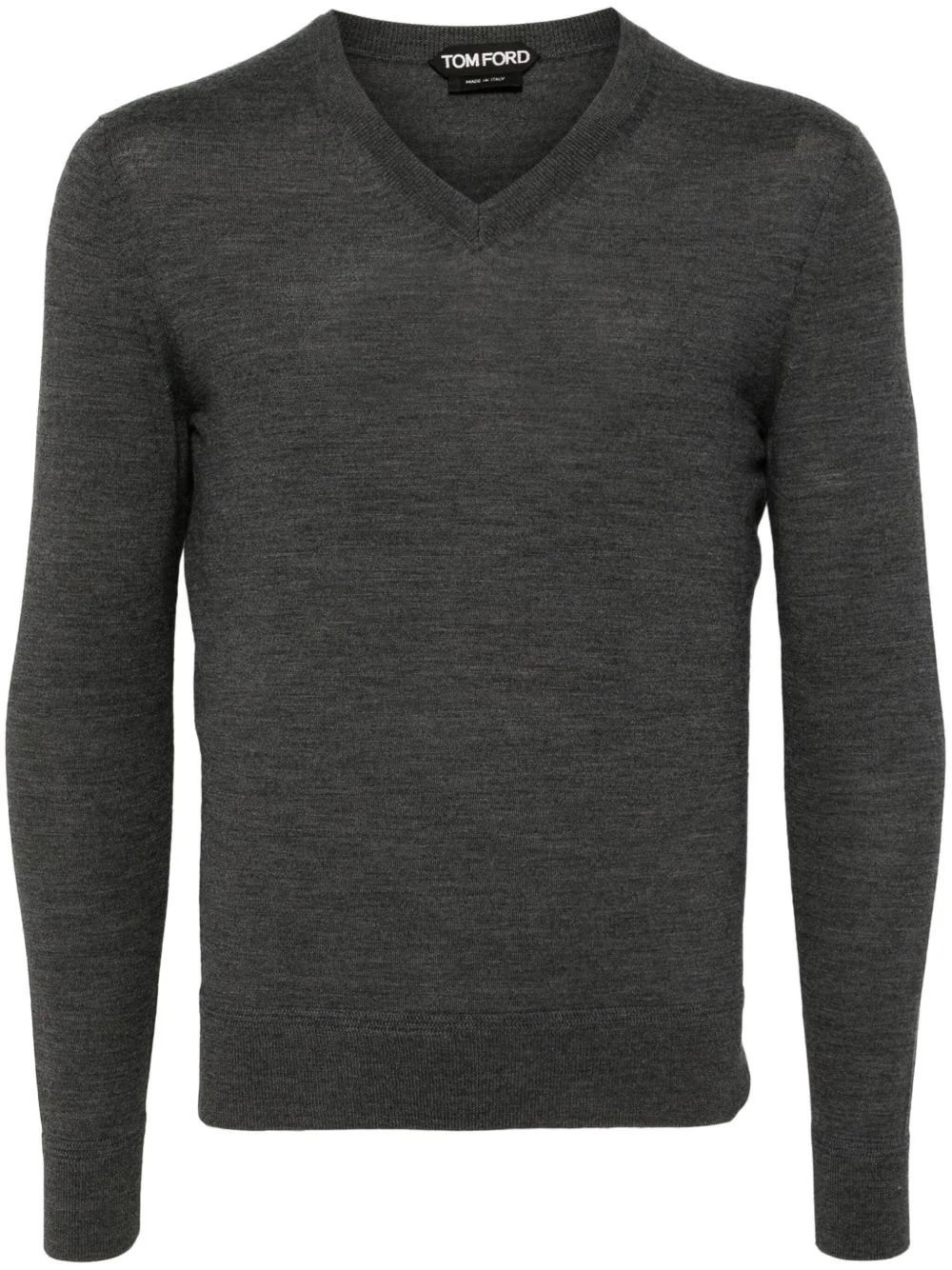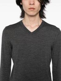 V-neck top Highlights - Dark grey - Long sleeves - Ribbed cuffs and hem Made in Italy Composition Wool 100% SIZE & FIT Model measurements Height 6 ft 2 in(1.87 m) Bust/Chest 33.07 in(84 cm) Hips 35.43 in(90 cm) Waist 26.77 in(68 cm) FittingInformation Designed for a slim fit, offering a comfortable fit that sits just away from the body Made with a lightweight knit, this piece offers some stretch