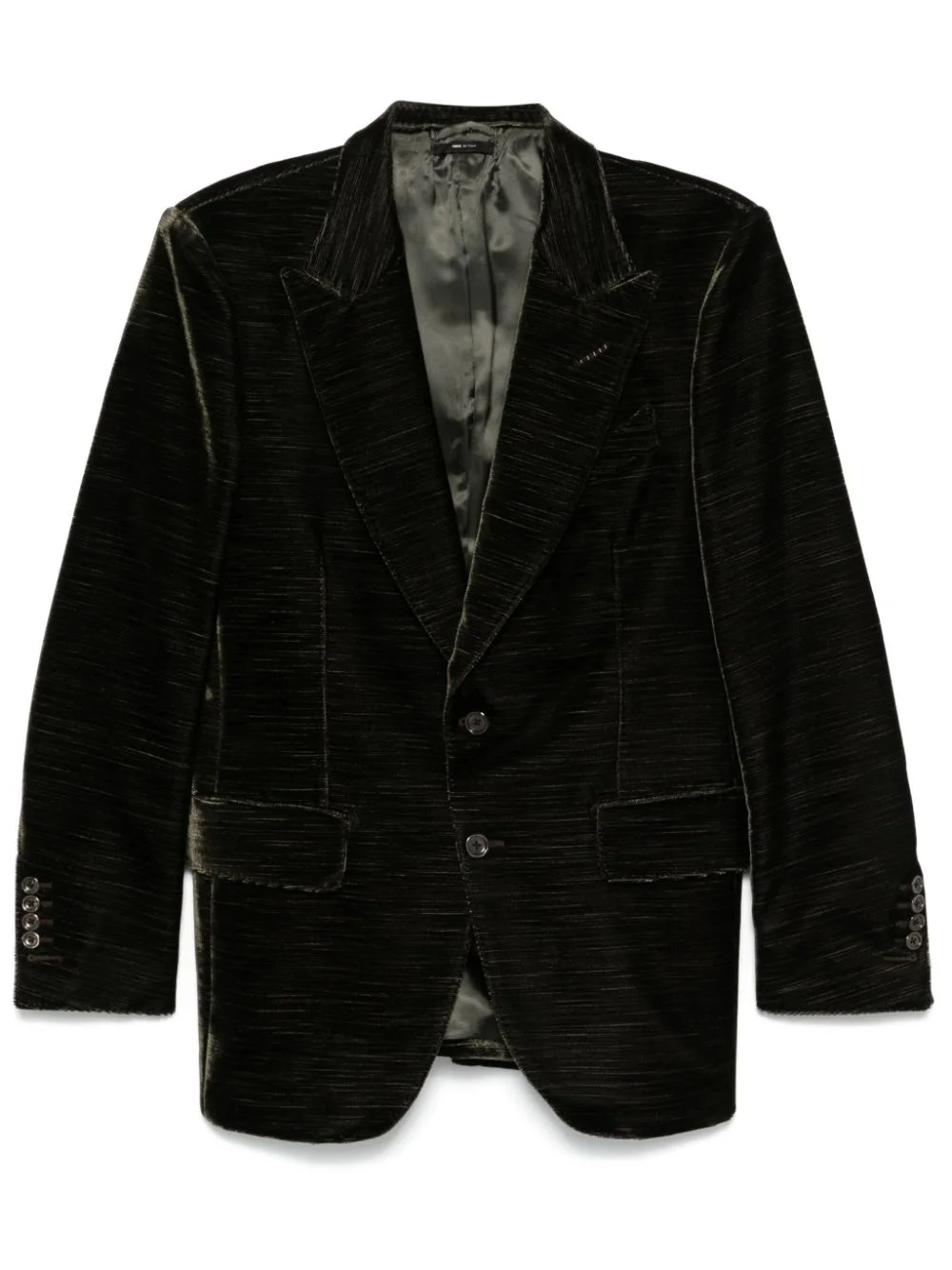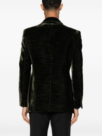 velvet blazer Highlights - Dark green - Front button fastening - Shoulder pads - Buttoned cuffs - American rear vent Made in Italy Composition Outer: Viscose 52%, Cotton 37%, Polyamide 11% Lining: Viscose 100%, Cupro 100% SIZE & FIT Model measurements Height 6 ft 2 in(1.87 m) Bust/Chest 38.18 in(97 cm) Hips 36.61 in(93 cm) Waist 29.13 in(74 cm) FittingInformation Designed for a slim fit, offering a comfortable fit that sits just away from the body The internal shoulder pads offer a structured shape Made from a midweight non-stretch fabric