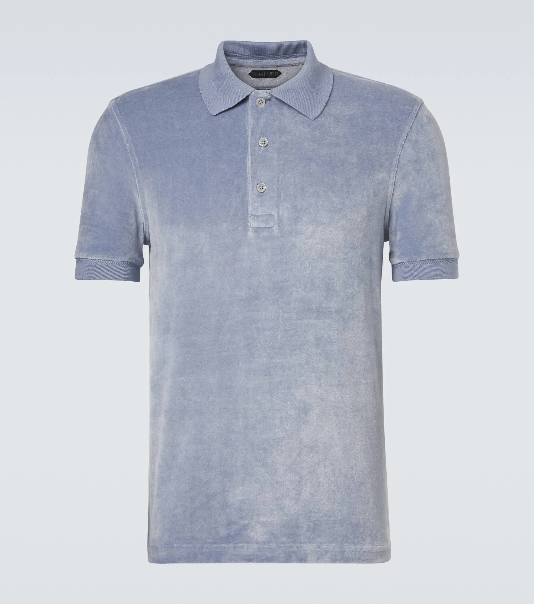 One of the most celebrated designers of all time, Tom Ford is a master at balancing high-octane glamour with modern masculinity. This classic polo shirt is crafted from soft and lustrous velvet. Product Details - Material: 43% cotton, 43% modal, 14% polyamide - Care instructions: dry clean - Made in Portugal - Color: blue - Designer color name: Sky - Contains non-textile parts of animal origin - Collar: polo collar - Closure: buttoned placket - Item number: P01097120 Size & Fit - True to size - Straight fit - Stretchy fabric - Falls to the hip - Height of model is 189cm-74.5" and wears a size IT 50