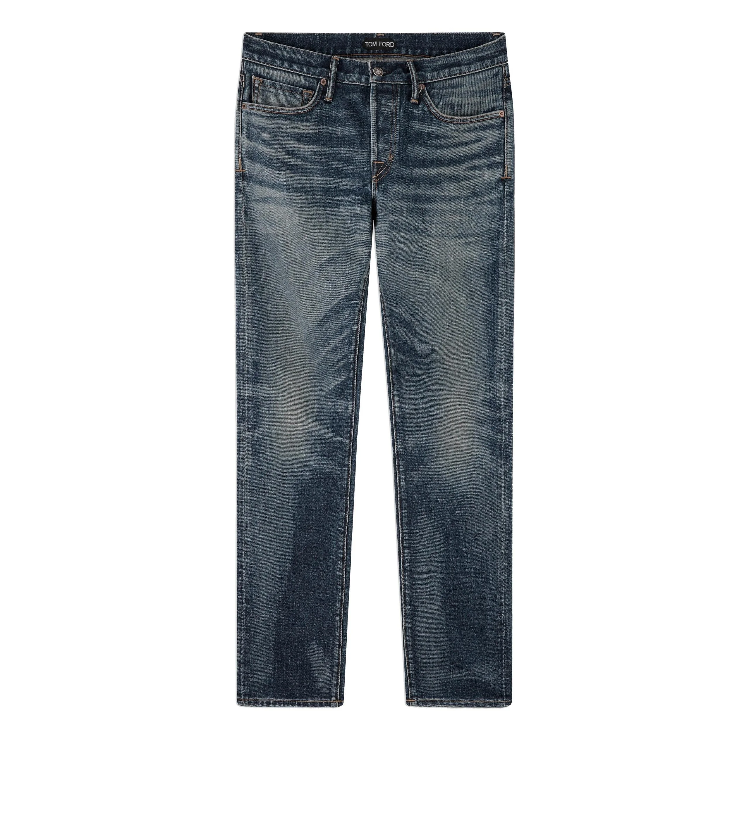 - SLIM FIT - TOM FORD LEATHER BACK TAB AND TACK BUTTONS - 17.5CM HEM - 98% COTTON 2% POLYURETHANE - MADE IN USA