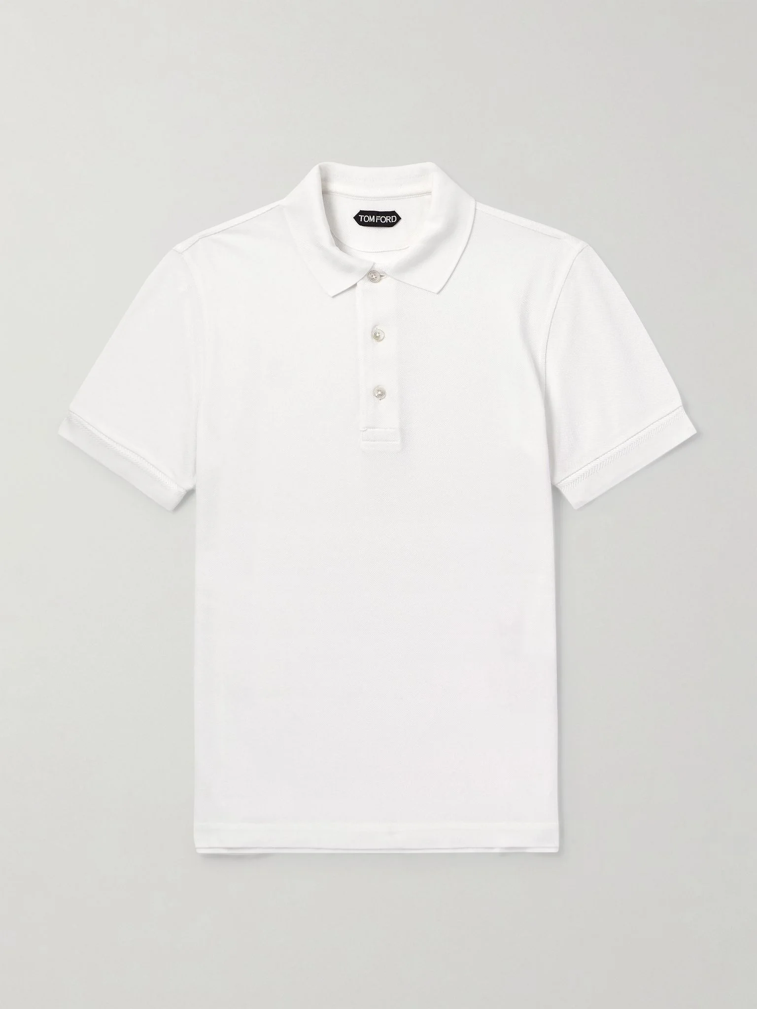 TOM FORD's polo shirt is made from pique that's knitted from a Lyocell and cotton-blend, which makes it exceptionally soft, smooth and breathable. It's finished with elegant mother-of-pearl buttons and a discreet logo embroidery by the hem. Size & Fit - Fits true to size. Take your normal size - Designed for a slim fit - Lightweight, slightly stretchy fabric - Model is shown wearing an IT 48 - Model measures: chest 38"/ 96cm, height 6'1"/ 185cm Details & Care - White Lyocell and cotton-blend pique - Button fastenings - 67% Lyocell, 33% cotton - Dry clean - Mother-of-pearl: Australia