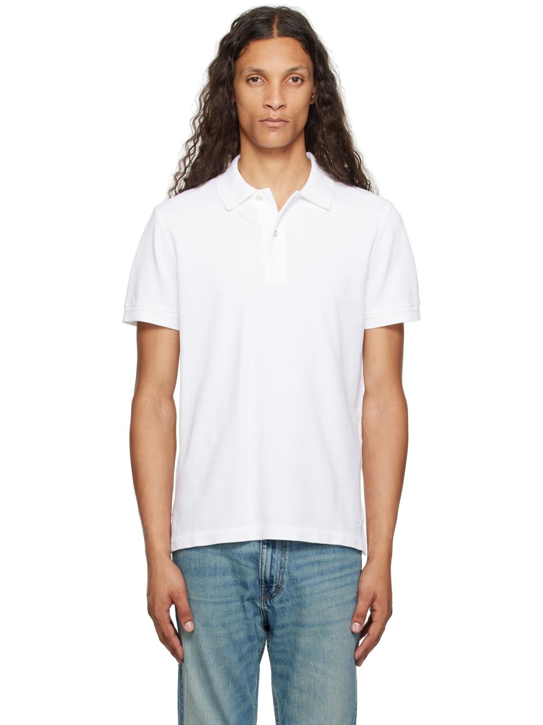 Cotton piqué polo. · Rib knit spread collar and cuffs · Two-button placket · Tennis-tail hem Supplier color: White
