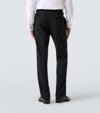 Tom Ford’s tailoring showcases meticulous attention to detail with a dose of high-octane glamour. Crafted from a soft wool blend, this tuxedo features a single-breasted blazer with shawl lapels and straight-leg pants. Product Details - Material: 96% wool, 4% elastane - Care instructions: dry clean - Made in Switzerland - Designer color name: Black - Item color: black - Lining: 59% cupro, 41% silk - Sleeve lining: 100% cupro - Blazer - Shawl lapel - Closure: buttoned front, zipper fly, button and hook fastenings - Vent: single - Pockets: welt pockets, internal pockets - Two-piece set - Contains non-textile parts of animal origin - Item number: P01042685 Size & Fit - True to size - Shoulder pad inserts - Slim fit - Non-stretchy fabric - Falls below the hip - Slim-leg - Unhemmed for tailoring - Height of model is 188cm-74" and wears a size IT 50