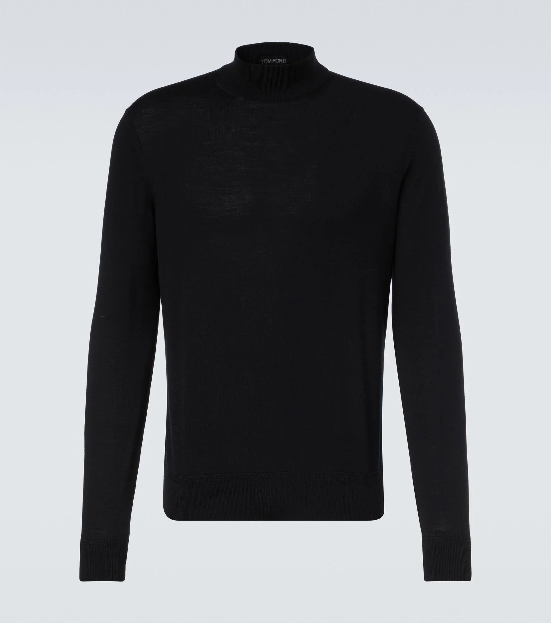 Tom Ford’s tailoring showcases meticulous attention to detail with a dose of high-octane glamour. This sweater is made from pure wool in a mockneck silhouette. Product Details - Material: 100% wool - Care instructions: hand wash - Made in Italy - Color: black - Designer color name: Black - Item color: black - Collar: crewneck - Cuff: ribbed - Hem: ribbed - Item number: P01097177 Size & Fit - True to size - Slim fit - Slightly stretchy fabric - Falls to the hip