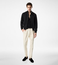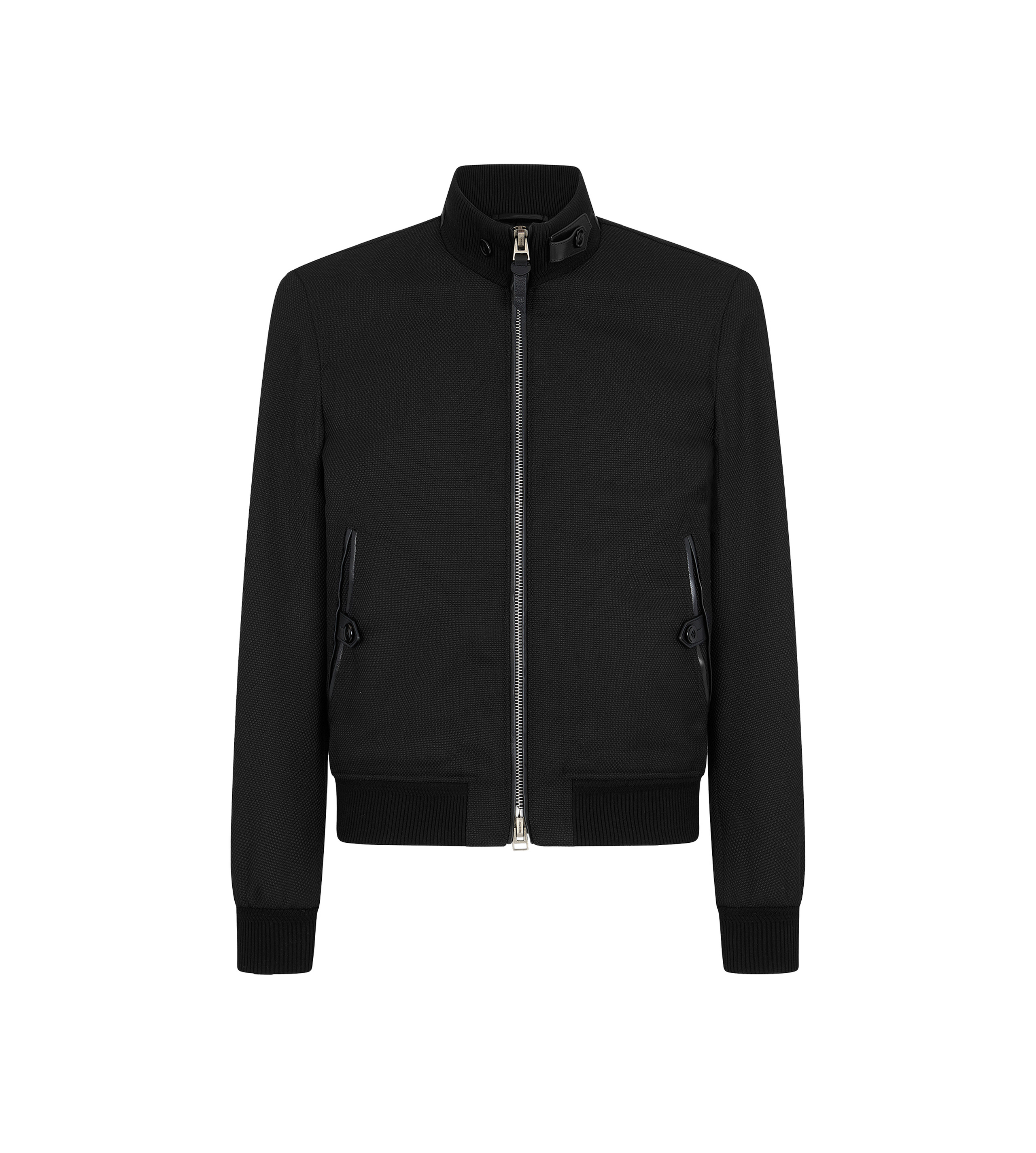 - BLOUSON - HALF LINED - KNITTED RIB TRIM ALONG CUFFS AND HEM - TOM FORD SIGNATURE PRESS SNAP FASTENING ALONG POCKETS AND COLLAR DETAIL - SMOOTH LEATHER FRAMING ALONG POCKETS, FRONT ZIP, AND NECKLINE - DOUBLE JET POCKET WITH LEATHER FRAMING - TOM FORD SIGNATURE DOUBLE ZIP CLOSURE - TOM FORD SIGNATURE LEATHER GRAB HANDLE CENTER BACK LENGTH 62CM - 44% VIRGIN WOOL 37% WOOL MOHAIR 19% SILK - MADE IN ITALY