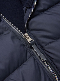 TOM FORD's jacket combines luxury materials with strategic construction. Reinforced with leather trims along the placket and stand collar, it's been knitted in Italy from naturally insulating wool and has a shell front panel that's quilted to keep the down fill evenly distributed. Size & Fit - Fits true to size, however those who are between sizes should take the larger size - Designed for a regular fit - Quilted, non-stretchy fabric with knit panels - Model is shown wearing an IT 48 - Model measures: chest 38"/ 96cm, height 6'1"/ 185cm Details & Care - Navy shell, wool and leather - Two-way zip fastening - 100% polyester; trim1: 100% wool; trim2: 100% leather (Lamb); filling: 90% down, 10% feathers (Goose); lining: 100% polyester - Partially lined - Dry clean