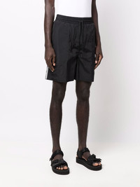 Achille drawstring shorts Designed by Tom Wood, the Achille shorts are detailed with a side-stripe and a printed logo towards the side. The elasticated drawstring waist adds to a sporty look. Imported Composition Polyamide 100% SIZE & FIT Model measurements Height 6 ft 2 in(1.87 m) Bust/Chest 36.41 in(92.5 cm) Hips 37 in(94 cm) Waist 29.52 in(75 cm) FittingInformation This piece fits true to size. We recommend you get your regular size Designed for a slim fit at the waist and loose over the leg Made with a lightweight non-stretch fabric