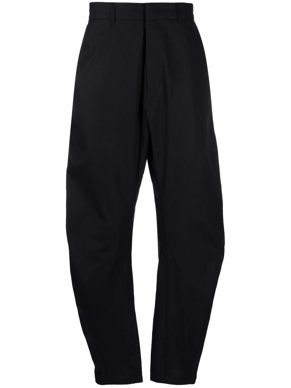 carrot shaped trousers These carrot-shaped trousers from Tom Wood's SS22 collection follow the brand's simple, innovative and functional style. They're crafted from cotton in a black shade and feature a rear button fastening pocket for storage. Imported Composition Cotton 100% SIZE & FIT Model measurements Height 6 ft 2 in(1.87 m) Bust/Chest 36.41 in(92.5 cm) Hips 37 in(94 cm) Waist 29.52 in(75 cm) FittingInformation This piece fits large – you might want to get one size down Cut for a slim fit Made with a mid-weight non-stretch fabric