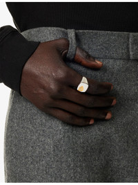 PRODUCT DETAILS - Tom Wood 18ct gold and white rhodium-plated 925 sterling silver and lab-grown diamond ring - 100% 925 sterling silver; plating 100% 18ct white gold, 100% white rhodium; stones 1 lab grown diamonds - Signet style, white lab-grown diamond, internal engraved branding, polished finish - Carat weight: 0.035 - Carat cut: round brilliant - Carat clarity: VS - Carat colour: F - Ring width: 5mm - Please use a soft, dry polishing cloth - Presented in a box Ref: R04566422