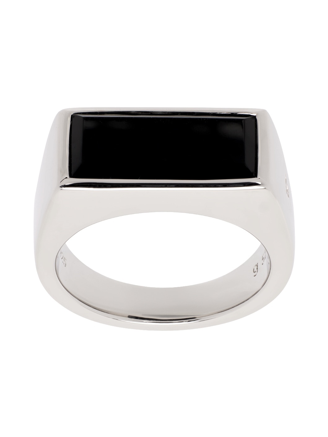 Signet ring in rhodium-plated polished sterling silver. · Bezel-set black onyx stone at face · Logo engraved at side Supplier color: 925 silver 925 sterling silver, rhodium, onyx. Made in Thailand 242762M147004