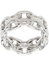 Fixed cable chain ring in rhodium-plated sterling silver. Hallmarking at inner band. Supplier color: 925 silver Rhodium-plated 925 sterling silver. Made in Thailand 252762M147005