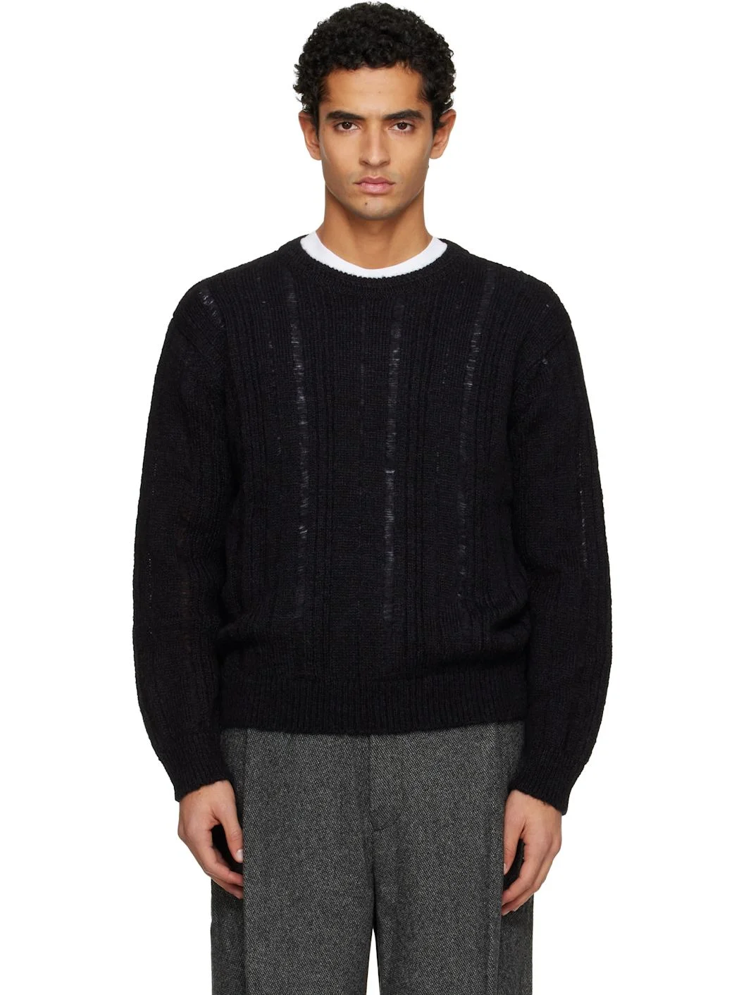 Black Distressed Ribbed Sweater