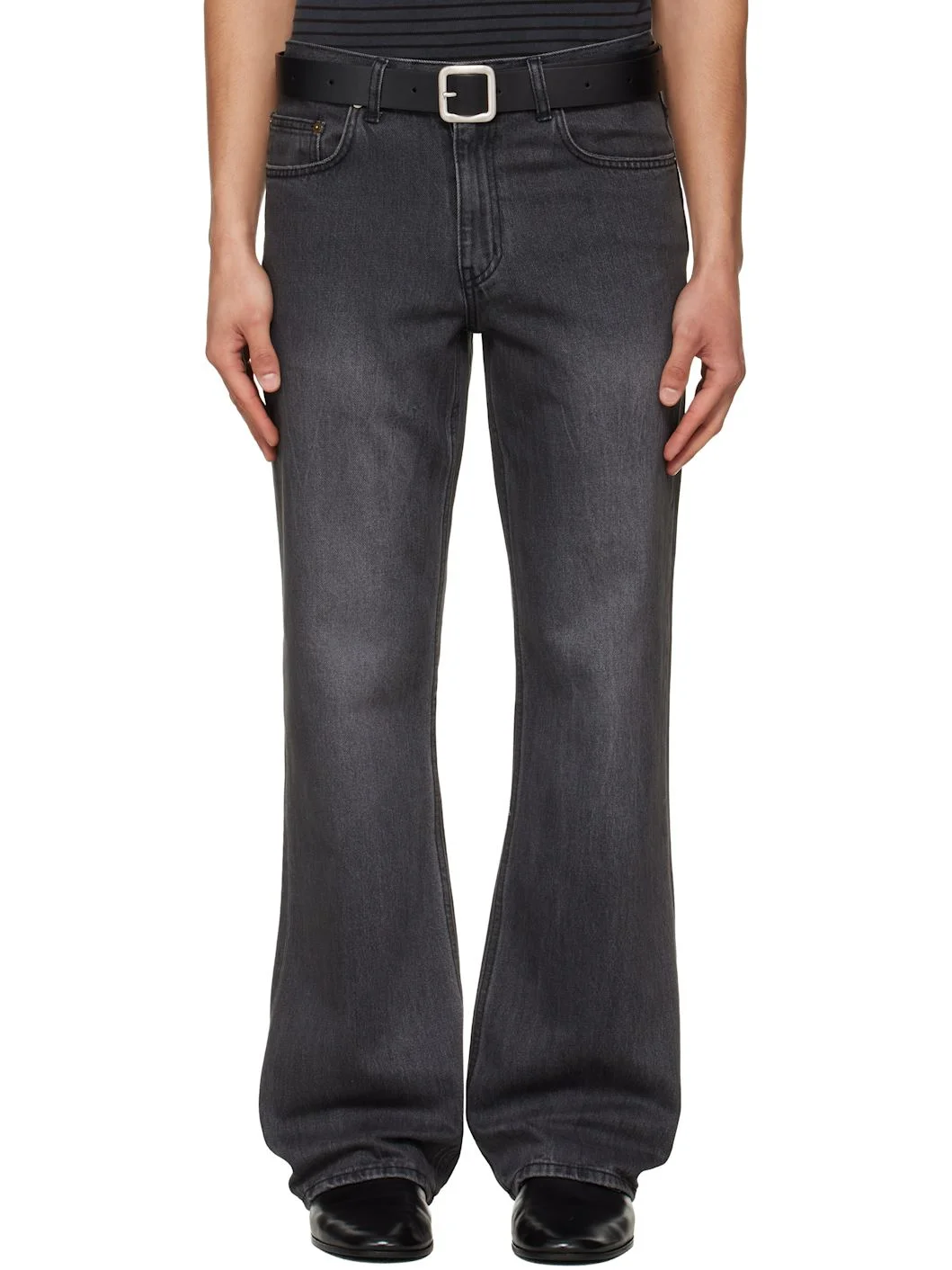 Non-stretch denim jeans. · Fading and distressing throughout · Belt loops · Five-pocket styling · Zip fly Supplier color: Washed black 100% cotton. Made in South Korea 261251M186010