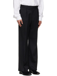 Wool-blend twill trousers. · Wide-leg · Belt loops · Four-pocket styling · Zip fly · Pleats at front · Creased legs Supplier color: Black 50% wool, 50% polyester. Made in South Korea 252251M191007