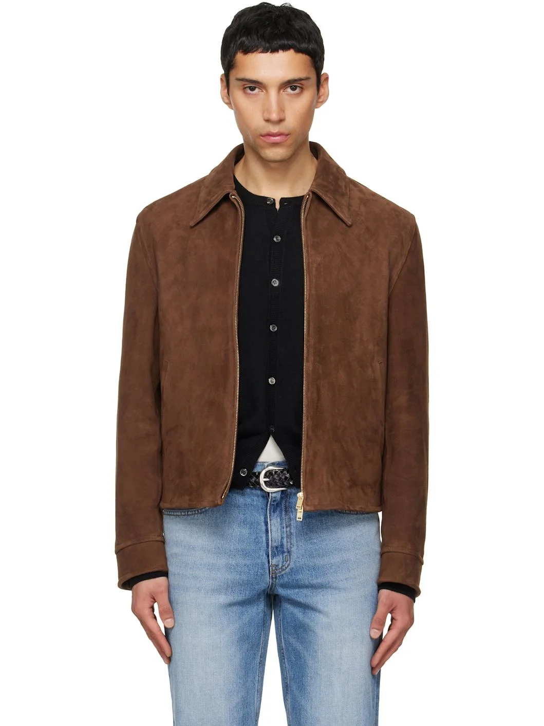 Brown Buckle Zip Goat Suede Jacket