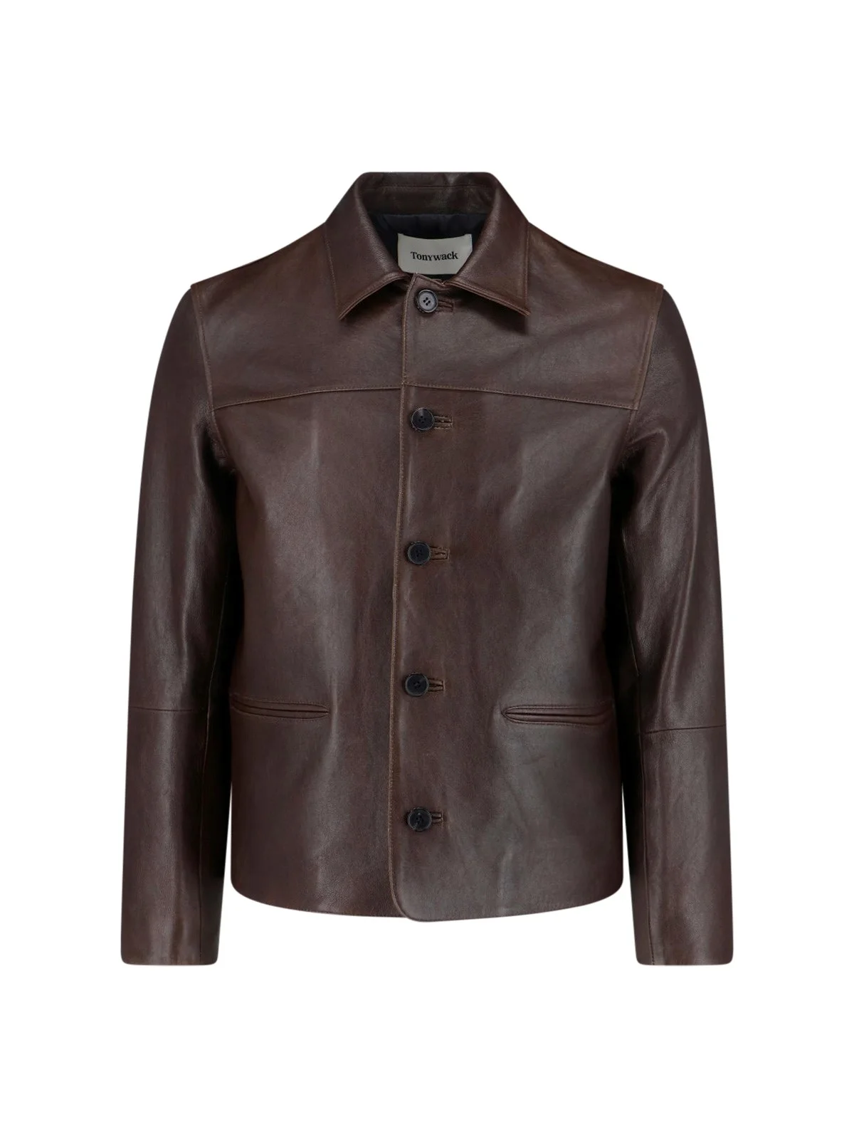 TONYWACK DARK BROWN LAMBSKIN JACKET WITH COLLAR, LONG SLEEVES, FRONT BUTTON CLOSURE, TWO FRONT WELT POCKETS, STRAIGHT HEM. PRODUCT INFO PRODUCT CODE BF12LJ301FADED BROWN COMPOSITION: 100% LAMBSKIN SIZE AND FIT: REGULAR FIT MADE IN: SOUTH KOREA