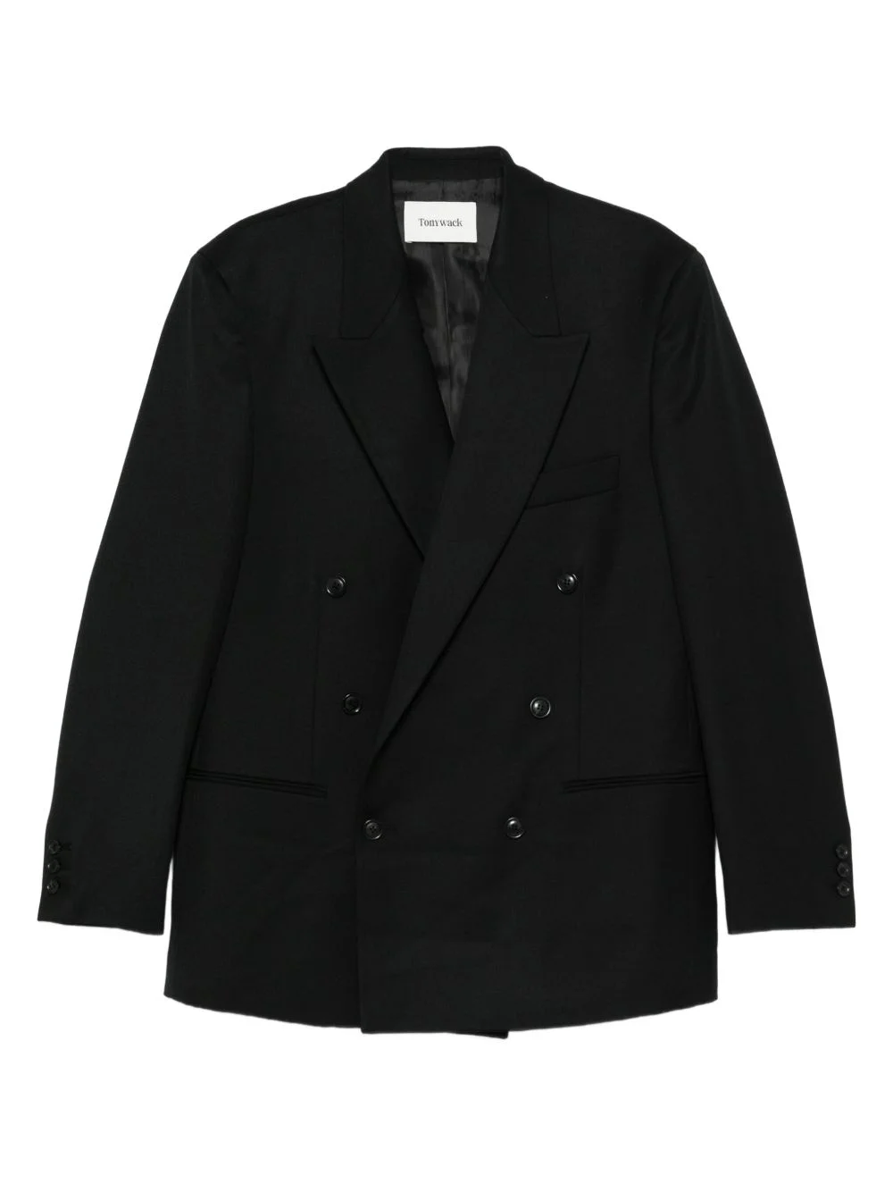 double-breasted jacket Highlights - Black - Wool blend - Peak lapels - Front button fastening - Side flap pockets - Buttoned cuffs Imported Composition Wool 50%, Polyester 50% SIZE & FIT Model measurements Height 6 ft 2 in(1.88 m) Bust/Chest 36.61 in(93 cm) Hips 35.82 in(91 cm) Waist 27.95 in(71 cm) Washing instructions Read Manufacturer Guidelines