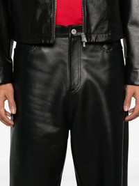 black front button and zip fastening belt loops classic five pockets seam detailing - Color: BLACK - Made in: Korea, Republic of - Designer Style ID: BE12LP01 BLACK Composition and care Lining Composition Polyester: 52.0%, Lining Composition Viscose: 48.0%, Outer Composition Lambskin: 100.0%