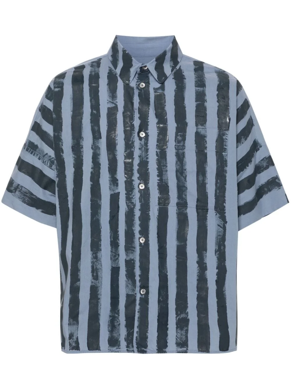 The Tinker shirt Highlights - Blue - Two-tone design - Cotton - Textured finish - Front button fastening - Vertical stripe pattern - Classic collar - Short sleeves - Chest patch pocket - Pleat detailing - Curved hem - When buying this unisex item, keep in mind that it is graded in standard men's sizing. Imported Composition Cotton 100% SIZE & FIT Model measurements Height 5 ft 11 in(1.8 m) Bust/Chest 33.07 in(84 cm) Hips 37.4 in(95 cm) Waist 25.19 in(64 cm) FittingInformation This unisex piece is designed for a loose fit whether you usually select women's or men's sizes Made from a midweight non-stretch fabric