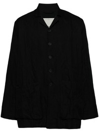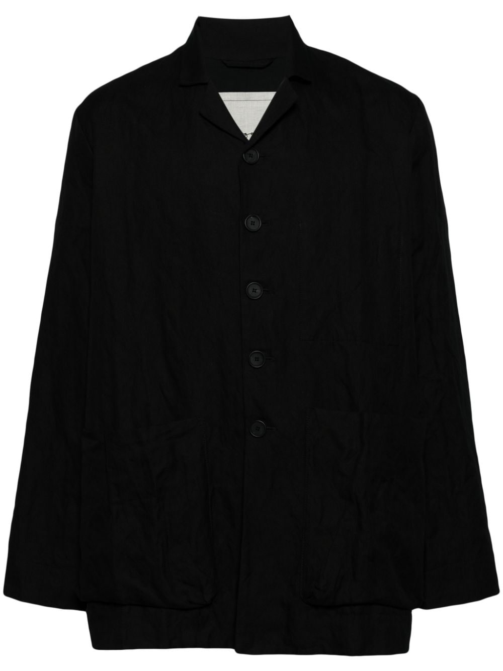camp-collar shirt jacket Highlights - Black - Cotton blend - Camp collar - Front button fastening - Long sleeves - Three front patch pockets - Straight hem Made in United Kingdom Composition Lining: Cupro 53%, Cotton 47% Outer: Cotton 94%, Metallic Fibre 6%