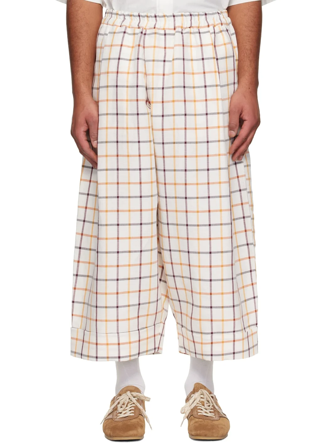 Linen- and cotton-blend twill trousers. · Check pattern throughout · Wide-leg · Concealed drawstring at elasticized waistband · Three-pocket styling · Pleats at front · Cropped legs · Rolled cuffs Supplier color: Tattersall 65% linen, 35% cotton. Made in Poland 252676M191012