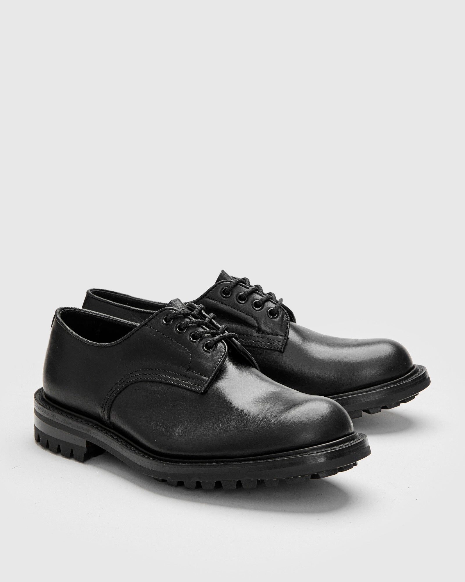 The Daniel Work Shoe is Tricker's classic 4-eyelet derby built for rugged pursuits. Made exclusively for Blue Owl, this collaboration features a fully vegetable-tanned horsehide upper that has been washed for added texture and softness. Inspired by classic work boots, the derby is built on Tricker's 4497K last - a rugged bump toe version of their time-tested 4497 last. Finished with blacked out details including gunmetal eyelets, Commando lug soles, and a full 360 degree storm welt. - Tricker's for Blue Owl Exclusive - 4497K Last - Washed vegetable-tanned horsehide leather - Goodyear storm welt construction - Gunmetal eyelets - Black edge dressing - Custom silver foil-stamped insole - Commando lug sole - Made in Northampton, England