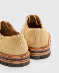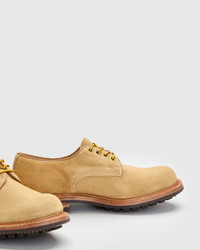 The Daniel Work Shoe is Tricker's classic 4-eyelet derby built for rugged pursuits. Made exclusively for Blue Owl, this collaboration features the brand's new Hairy Suede, a durable yet soft suede with a textured nap. Inspired by classic work boots, the derby is built on Tricker's 4497K last - a rugged bump toe version of their time-tested 4497 last. The collaboration is finished with dual-tone work boot laces, Commando lug soles, and a full 360 degree storm welt. - Tricker's for Blue Owl Exclusive - 4497K Last - Tan Hairy Suede - Goodyear storm welt construction - Brass metal eyelets - Dual-tone laces - Natural-finished midsole - Custom gold foil-stamped insole - Commando lug sole - Made in Northampton, England