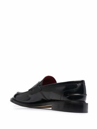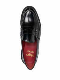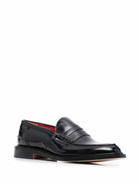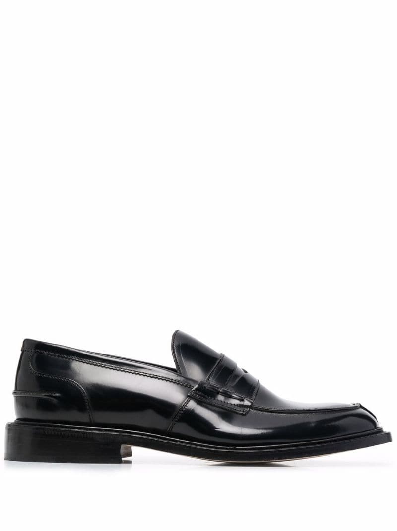 Black leather James penny loafers from Tricker's featuring slip-on style, almond toe, branded insole and flat leather sole. Highlights - Black - Leather - Slip-on style - Almond toe - Branded insole - Flat leather sole Made in United Kingdom Composition sole: Leather 100% lining: Leather 100% outer: Leather 100% Product measurements for size: 9 (UK) Heel: 3 cm (1.2 in) Sole height: 1 cm (0.4 in)