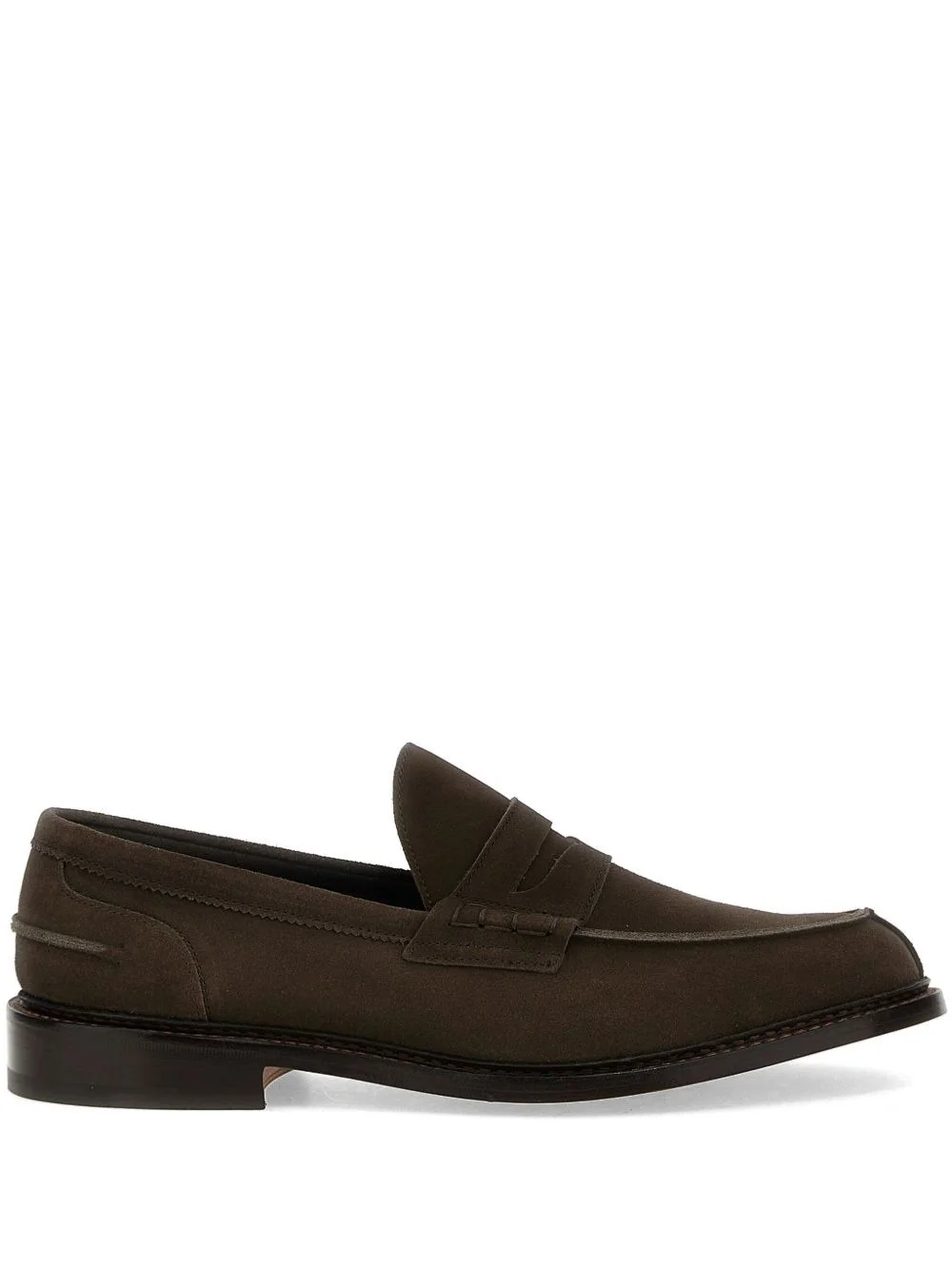 Adam loafers Highlights - Chocolate brown - Penny slot - Moc stitching - Branded leather insole - Flat sole Made in United Kingdom Composition Outer: Calf Suede 100% Lining: Calf Leather 100%