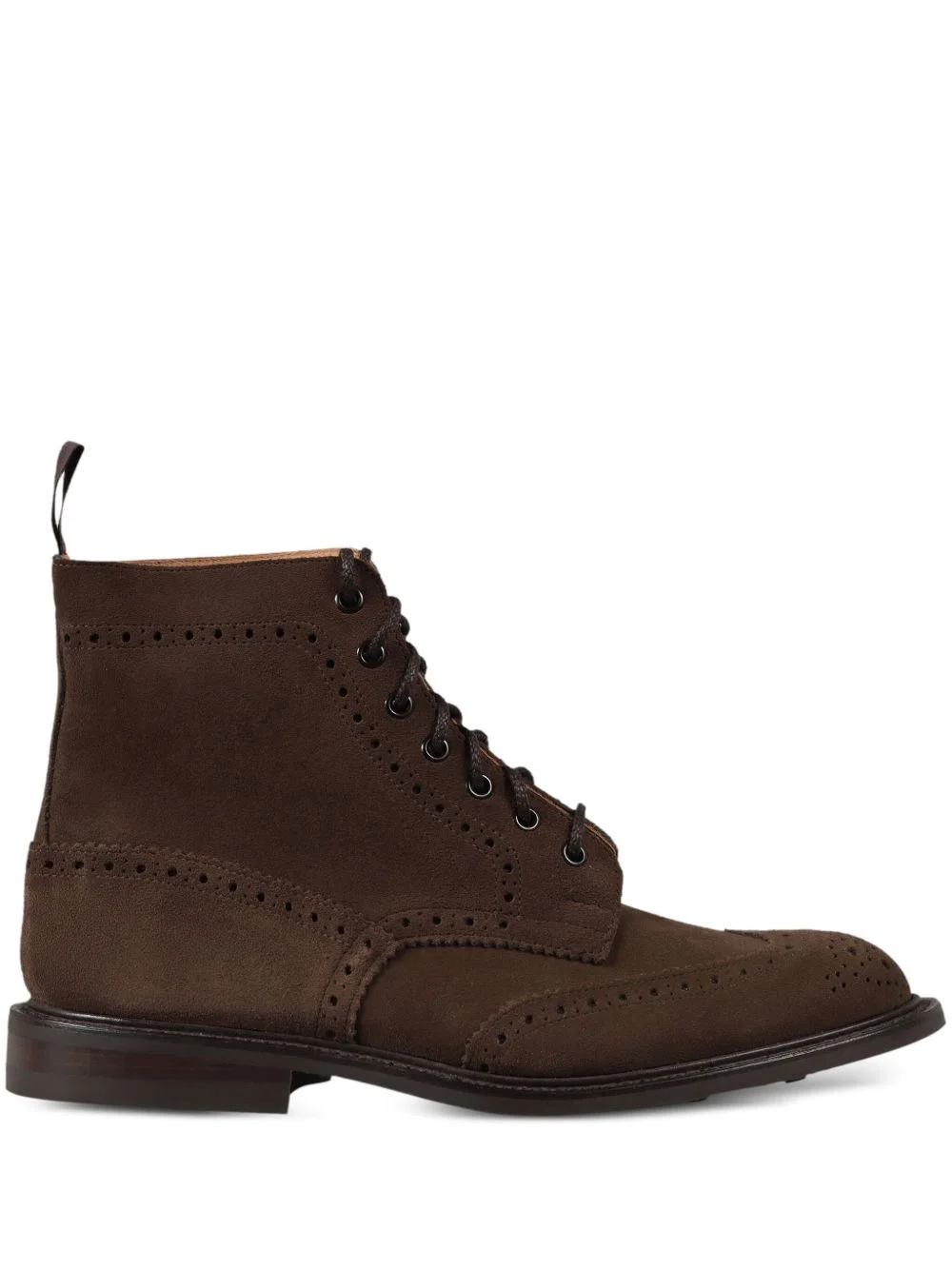 Stow leather biker boots Highlights - Brown - Front lace-up fastening - Pull-tab at the heel - Perforated detailing - Almond toe - Branded insole Made in United Kingdom Composition Sole: Rubber 100% Lining: Leather 100% Outer: Calf Suede 100%