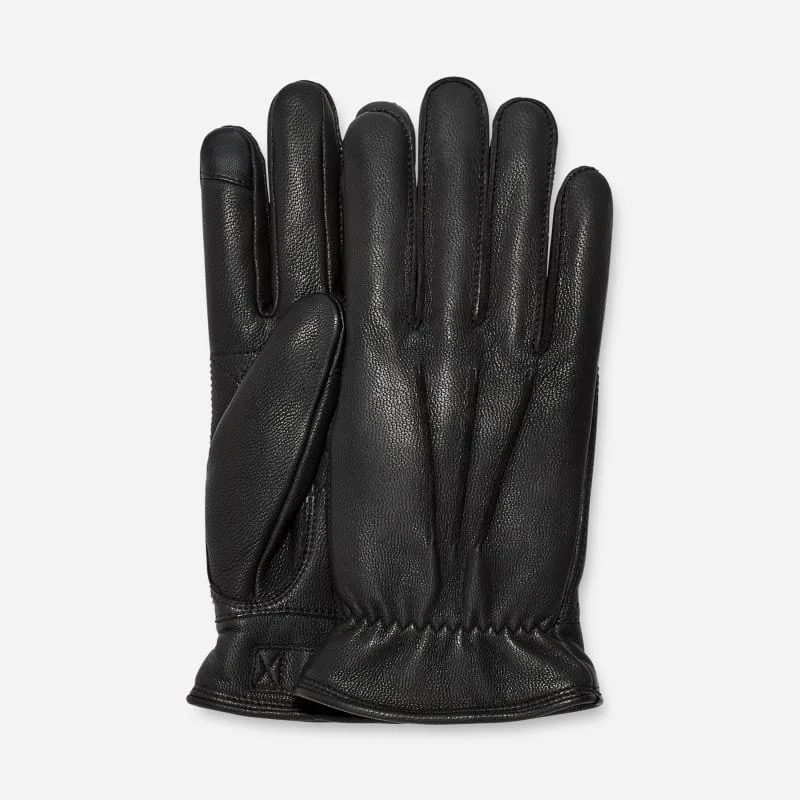 POV: you're looking for the perfect set of leather gloves. You're welcome. Glove. 100% water-resistant genuine leather. The UGG® License Plate leather label on wearer's cuff. Imported. UGG® Men's 3 Point Leather Glove in Black, Size M