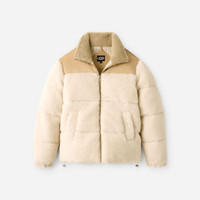 Our Emette UGG®fluff Puffer Jacket is the cold-weather layer you'll feel you were destined to own. Instantly comfortable and supremely warm, it's made with a mix of signature UGG® textiles, from the faux suede shoulder panels (with our Classic whipstitch detailing!) to the plush UGG®fluff exterior and fleece-lined pockets. The Recycled Faux down fill adds heat-holding insulation and a lush, lofty feel. With a stand collar, classic fit, and timeless aesthetic, we see a lot of the Emette in your future. Relaxed-fit plush fleece puffer jacket. Self - 100% Polyester. Lining - 100% Polyester. Fill - Recycled Synthetic Down Fill (Polyester). Stand collar. Faux shearling Collar and yoke with whipstitch details. Vislon zipper with The UGG® Logo on zipper pull. Side welt pockets with soft fleece inchhand warmer inch pocket linings. UGG® leather license plate label on wearer's left cuff. Clean finish turn back cuffs. UGG® logo cord stoppers on hem. 29 inch HPS Length [Size M]. Imported. UGG® Men's Emette UGG®fluff Puffer Jacket Fleece in Natural/Sand, Size XL
