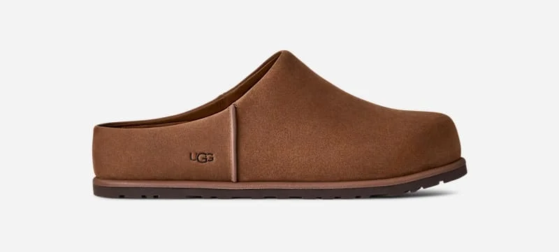 Our Otzo Clog brings ultra comfort, a sleek silhouette, and everyday wear together. Designed with a nubuck upper, it has the look of an elevated slip-on, and a contoured EVA footbed ensures steady movement. Plus, the breathable knit lining keeps you feeling fresh from day to night. The question isn't if the Otzo is ready. Are you? Protected: Post Applied Treatment. Waterproof leather. Nubuck upper. Leather and RWS wool jersey lining, Lining incorporates peppermint-based anti-odor treatment. Leather and Microfiber sockliner cover with anti-odor treatment. Contoured EVA footbed. Lightweight rubber (30% FCS natural rubber) outsole. The UGG® Logo, embossed. RN 88276. UGG® Men's Otzo Clog Nubuck Shoes in Dark Chestnut, Size 11.5