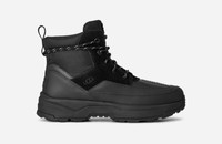 Cold strolls and commutes are what the Truckee Field Boot lives for. A contemporary take on function, the upper has a sleek combination of leather and textiles with an above-the-ankle shaft for lightweight weather protection and a weather rating up to -20C. The supportive EVA midsole is wrapped in a bold, Spider Rubber outsole for enhanced traction. Waterproof Features. Seam-sealed construction. Waterproof leather. Gusseted tongue with water repellent coating. Leather, Textile upper. Textile collar and tongue, Metal eyelets, Punched eyelets. Round laces. Textile lining made from 100% recycled polyester fibers. Textile sockliner. EVA midsole. Spider Rubber outsole for traction. Cold-weather rated to -20C. The UGG® Logo, heat-embossed. RN 88276. UGG® Men's Truckee Field Boot Leather Boots in Black, Size 13
