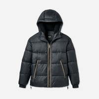 Featuring a light-as-air synthetic down fill, the Xayden UGG®braid Puffer Jacket is designed to wrap you in warmth without weighing you down. It features a clean, modern design with our heritage UGG®braid along the front placket and pockets. The fleece-lined hood and hand warmer pockets add even more coziness to this instant cold-weather classic.This product was made in a factory that supports women in our supply chain with the help of Reimagining Industry to Support Equality (RISE). This collaborative initiative creates partnerships with brands like ours to empower and educate women in the workplace. Relaxed-fit hooded puffer jacket. Self - 100% nylon. Water-resistant material (Fabric passes AATCC35 Rain Test - rain or snow will not stick to or wet the fabric). Lining - 100% nylon. Fill - synthetic down fill (100% recycled polyester). Plush fleece lined hood (100% recycled polyester). Zipper closure with The UGG® Logo zipper pull. Zipper pockets with bungee zipper pulls with rubber-dipped ends. The UGG® Logo cord stoppers at hood and hem. UGG®braid trim tape on center front placket and pocket openings. Soft fleece inchhandwarmer inch pocket linings. Knit storm cuffs with thumbholes. The UGG® Logo label on center back. 30 1/2 inch HPS length [size M]. Imported. UGG® Men's Xayden UGG®braid Puffer Jacket Nylon in Black, Size M