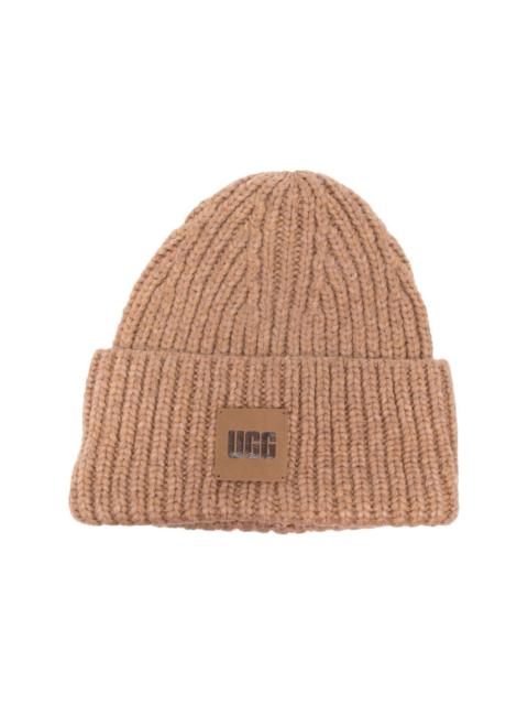 logo-patch ribbed-knit beanie jet black chunky ribbed knit logo patch to the front turn-up brim pull-on style Imported Composition Acrylic 78%, Nylon 17%, Wool 5%