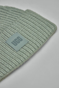 Beanie with a ribbed texture in a soft green tone. It features a visible brand label on the front, adding a subtle touch of style. Materials: 43% Acrylic / 33% Recycled Acrylic / 17% Recycled Nylon / 7% RWS Wool Color: grey mist SKU: 154590 Brand style: 20061